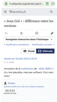 La section “Discussion” de la page Wikipédia dévoile la ténacité de la croyance et retrace la constance avec laquelle les contributeurs modifient régulièrement les rectifications de la famille Gol concernant leur nom de famille: