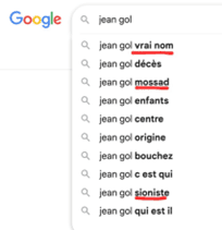 La saisie automatique du moteur de recherche Google révèle non seulement l’obsession pour le nom “Gol”, mais également les fantasmes qu’il projette (associé à “Mossad”, “sioniste”)